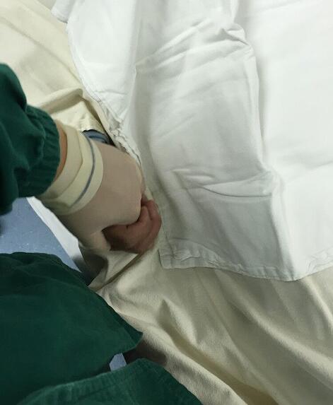 這時,手術護士李媛媛主動上前握住了張奶奶的手,萬分緊張而又深感無助的張奶奶像抓住了依靠。小李全程牽著張奶奶的手,張奶奶則緊緊的、用力的“捏著”小李的手,生怕會放掉一樣,這樣持續(xù)了將近一個小時。正是“握手”這個小小的舉動,平復了張奶奶的緊張情緒。各項手術工作也才有序開展。