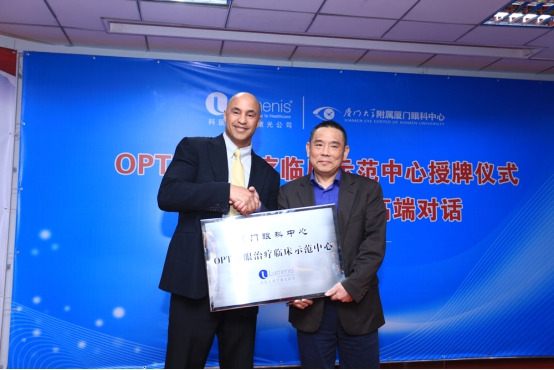 Rolando Toyos醫(yī)學博士授“OPT干眼治療臨床示范中心”牌給廈門眼科中心
