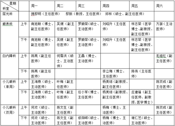 廈門大學附屬廈門眼科中心多點執(zhí)業(yè)醫(yī)師排班表