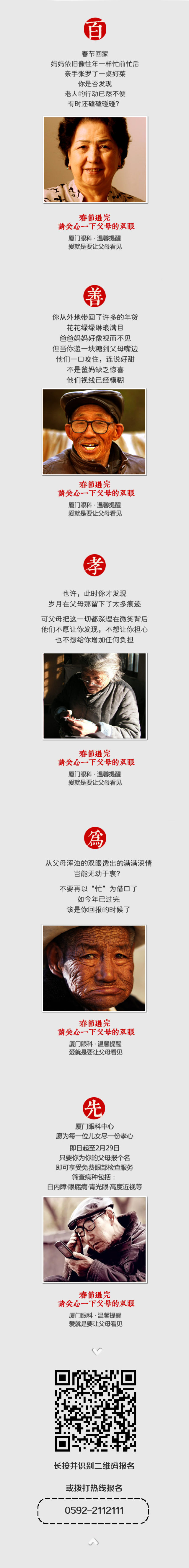 【文章導(dǎo)讀】百善孝為先 廈門眼科中心溫馨提醒:愛(ài)就是要讓父母看見(jiàn) 春節(jié)回家,媽媽依舊像往年一樣忙前忙后,親手張羅了一桌好菜,你是否發(fā)現(xiàn),老人的行動(dòng)已然不便,有時(shí)還磕磕碰碰?