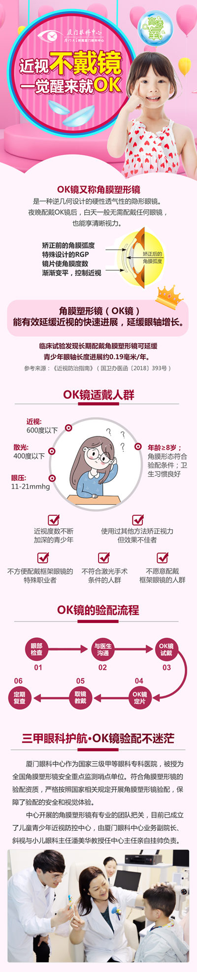 廈門大學(xué)附屬廈門眼科中心作為國家三級甲等眼科??漆t(yī)院,被授為全國角膜塑形鏡安全重點(diǎn)監(jiān)測哨點(diǎn)單位,具備高新醫(yī)療設(shè)備,符合角膜塑形鏡的驗配資質(zhì),嚴(yán)格按照國家相關(guān)規(guī)定開展角膜塑形鏡驗配,保障了驗配的安全和視覺體驗。