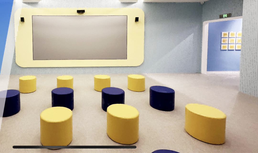 可容納45人的多媒體宣講區(qū),配備20套VR頭盔和手柄,通過(guò)生動(dòng)有趣的短視頻讓孩子們?cè)跉g樂(lè)的氛圍中學(xué)習(xí)眼健康知識(shí)。