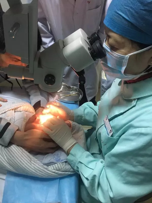 為涵涵拆線的芬琴護士長說:“我是頭一次在表麻下為這么小的孩子拆角膜線。為了讓涵涵更好的恢復(fù),要分4次來拆。每次來小寶貝都長大一些。希望他能健康茁壯的成長。”