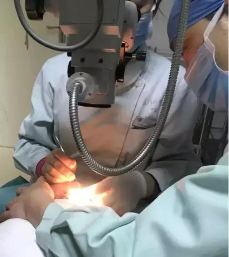 商旭敏博士看過(guò)后,王芬琴護(hù)士長(zhǎng)用眼用刮匙在表麻下,不到1分鐘就將寶寶的異物取了出來(lái)。
