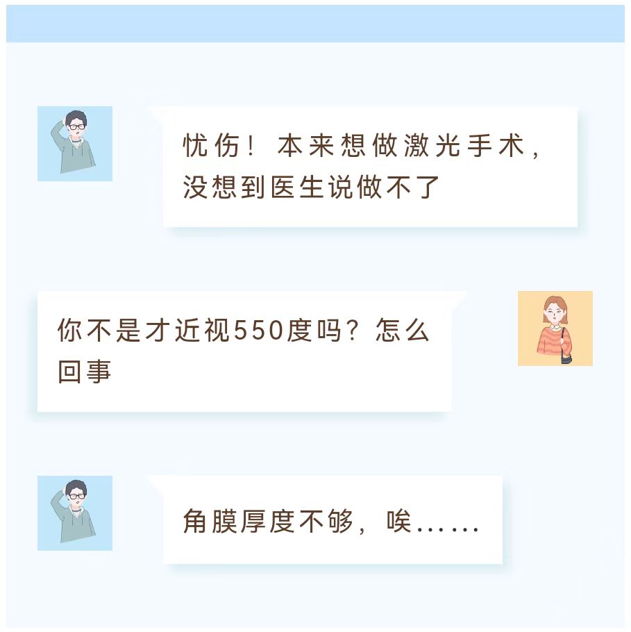羨慕不已的張先生也準(zhǔn)備通過激光手術(shù)來重返清晰視界,但就在各項(xiàng)檢查順利進(jìn)展的時(shí)候,一紙角膜偏薄無法做激光手術(shù)的檢查結(jié)果,令張先生如墜冰窟。