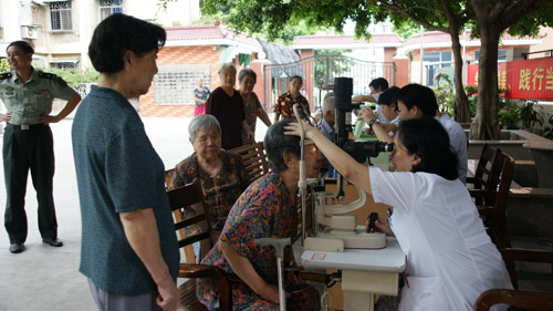 在干休所,眼科專家耐心細(xì)致地為每一位老干部作眼部檢查,向他們講解眼保健知識(shí),進(jìn)行診斷,并發(fā)放藥品。醫(yī)護(hù)人員則熱情地為老人們測量血壓、作視力檢查。為了幫助老人們掌握眼保健知識(shí), 醫(yī)護(hù)人員還專門搜集了眼病常見問題及愛眼護(hù)眼保健知識(shí)等,印制成宣傳手冊(cè)發(fā)放給老人。