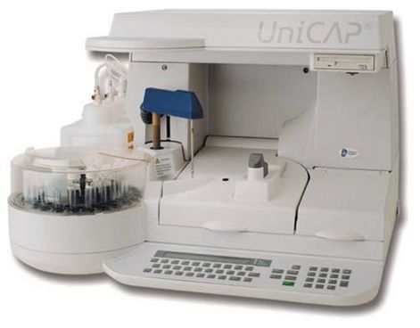 UniCAP是一先進(jìn)的實(shí)驗(yàn)室系統(tǒng),包括體外檢測(cè)試劑和高度自動(dòng)化的儀器。所有的操作步驟:加樣、加試劑及ImmunoCAP、孵育、清洗和計(jì)算,全部自動(dòng)化。而且,嚴(yán)格控制測(cè)試條件,包括內(nèi)部?jī)?chǔ)存的標(biāo)準(zhǔn)曲線,確保實(shí)驗(yàn)結(jié)果的真實(shí)可靠。從一簡(jiǎn)單的血樣,UniCAP可快速而準(zhǔn)確地得到檢測(cè)結(jié)果。