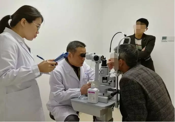 吳護(hù)平教授為五緣院區(qū)患者查眼