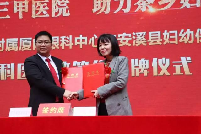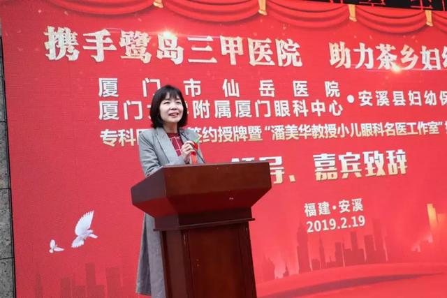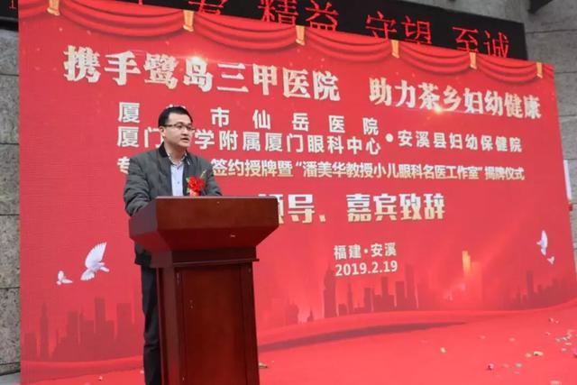2月19日上午,廈門(mén)大學(xué)附屬?gòu)B門(mén)眼科中心與安溪縣婦幼保健院就小兒眼科共建醫(yī)療聯(lián)合體,并舉行了“潘美華教授小兒眼科名醫(yī)工作室”揭牌儀式。