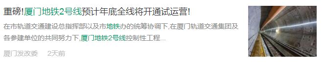 今年年底,大家翹首期盼的廈門地鐵2號線,預(yù)計就要開通試運營了?。?/div>