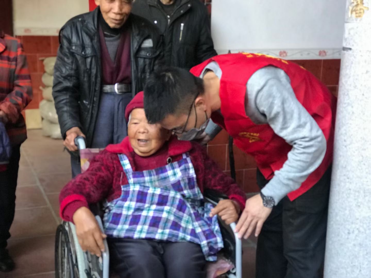 2天時間,6個高山村落,143位老人,200公里山路,鮮艷的鳳凰花“光明先鋒”志愿服務(wù)隊旗幟在高山上高高飄揚。