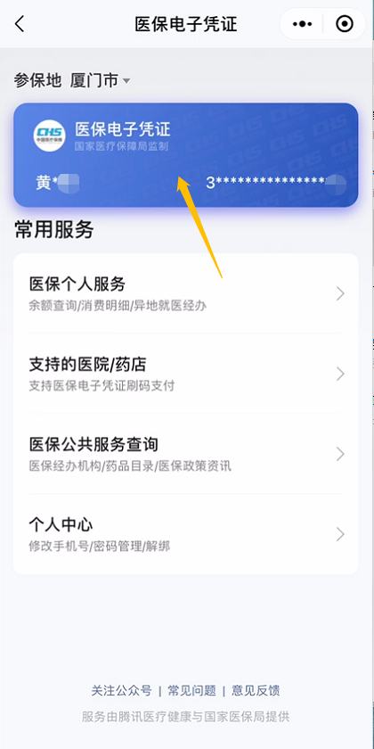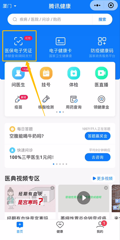 進入微信,點擊“支付”-“醫(yī)療健康”-“醫(yī)保電子憑證”