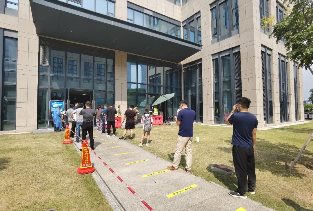 在接到支援指令后,廈門眼科中心高速重視、再次緊急行動(dòng)。“我有經(jīng)驗(yàn),我報(bào)名!”“我參加!”9月18日一早,80名醫(yī)護(hù)人員迅速集結(jié),披甲上陣相繼出發(fā)前往深田、康樂、萬壽、燦坤文創(chuàng)園等社區(qū)開展第二輪核酸檢測工作。