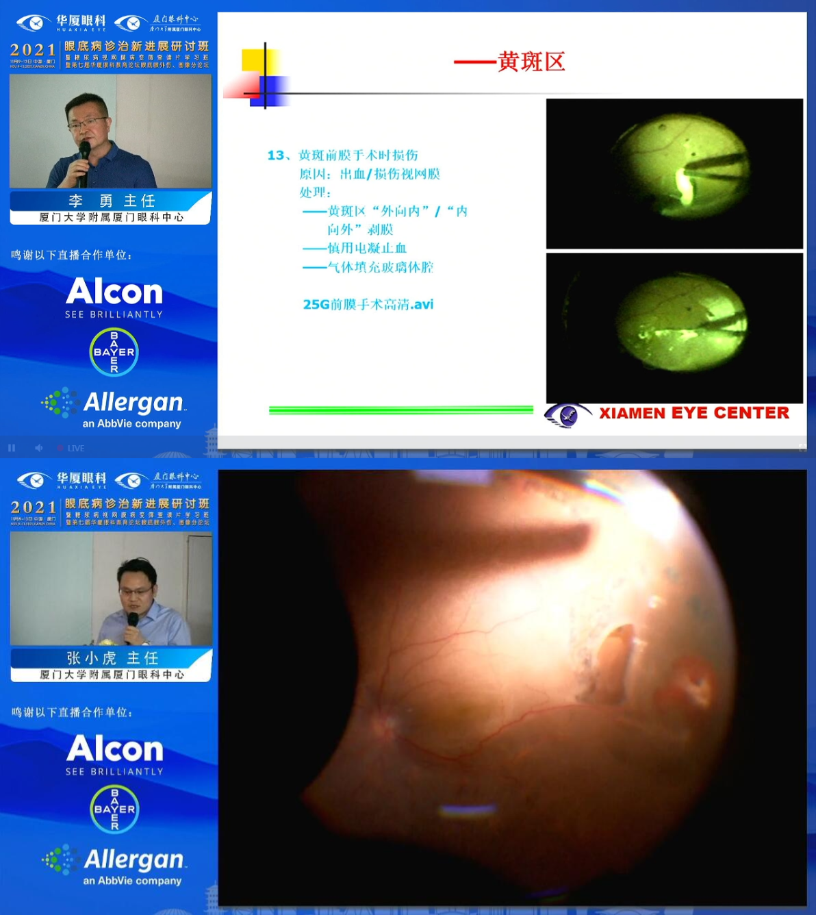 黎曉新院長圍繞高度近視黃斑劈裂、葡萄膜炎、視網(wǎng)膜靜脈阻塞、兒童遺傳性視網(wǎng)膜病、DR適應(yīng)癥、孔源性視網(wǎng)膜脫離、鞏膜扣帶術(shù)、眼內(nèi)液檢測、眼內(nèi)激素治療DME等主題進行全方位深層次的講解,對有關(guān)熱點問題積極探討,交流實踐經(jīng)驗,分享成果,助力中國防盲治盲事業(yè)發(fā)展。
