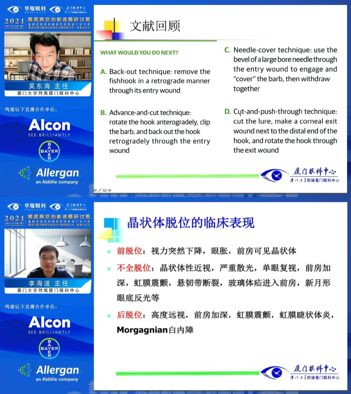 本次會議旨在搭建專家與學(xué)員的溝通交流平臺,推進眼底病診療新技術(shù)的普及和臨床應(yīng)用。會議特別邀請了廈門眼科中心總院長、國際眼科科學(xué)院院士黎曉新教授,業(yè)務(wù)院長、眼底病??茙ь^人吳國基教授,眼外傷專科帶頭人蔡錦紅主任醫(yī)師,眼底病??浦魅吾t(yī)師劉志雄,眼底病??聘敝魅吾t(yī)師王曉波,眼外傷??浦魅吾t(yī)師黃艷明,眼底病??聘敝魅吾t(yī)師龔頌建,眼底病專科副主任醫(yī)師李勇,眼底病專科副主任醫(yī)師李明翰蒞臨授課,更邀請到白內(nèi)障專科帶頭人張廣斌教授,眼表??茙ь^人吳護平教授等近30位優(yōu)秀導(dǎo)師強勢助陣。