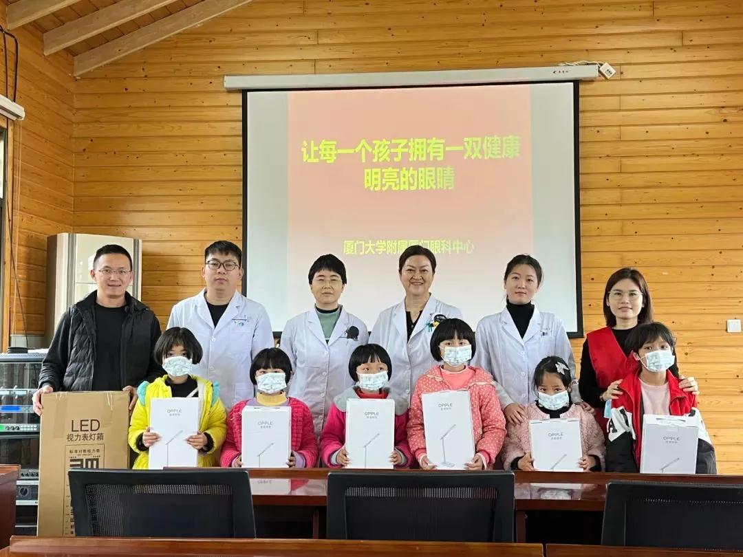1月5日,潘美華院長親自領銜帶隊,深入同安區(qū)蓮花中心小學上陵小學教學點和白交祠小學教學點,為鄉(xiāng)村孩子進行視力篩查、科普宣教、贈送護眼大禮包等公益活動,多方位、科學、精準、長效地做好廈門市兒童青少年近視綜合防控,協(xié)助學校建立近視防控體系。