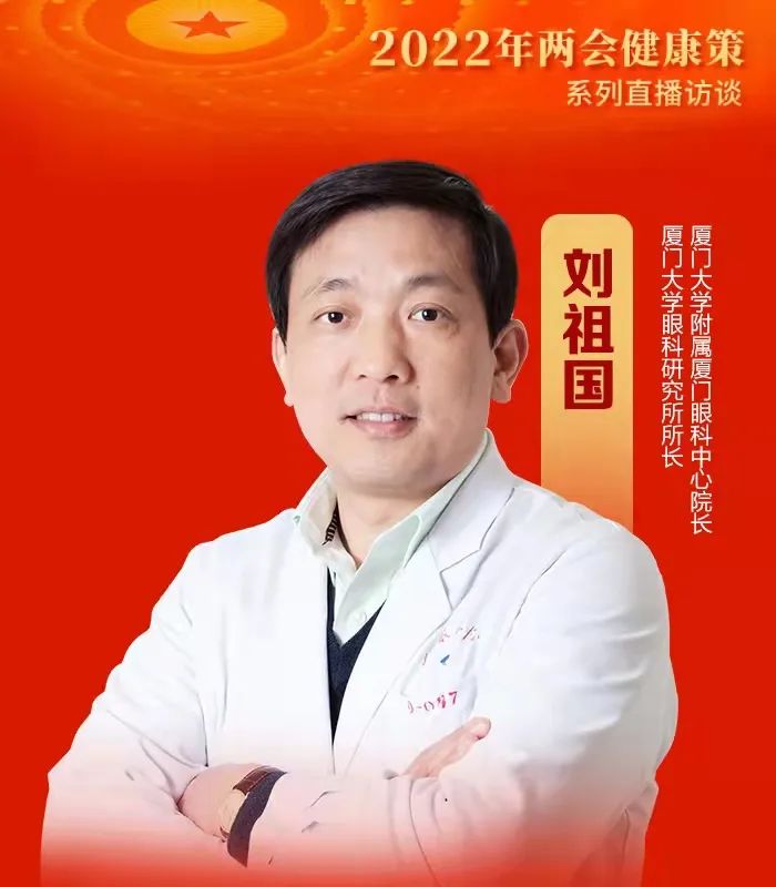 2022年3月,人民日報(bào)健康客戶端再次推出“兩會(huì)·健康策”系列直播訪談節(jié)目眼健康專場,特別邀請廈門大學(xué)眼科研究所所長、廈門大學(xué)附屬廈門眼科中心劉祖國教授做客直播間,圍繞干眼在我國的高發(fā)現(xiàn)狀及規(guī)范化治療進(jìn)行深入探討,為干眼防控及管理體系建設(shè)獻(xiàn)計(jì)獻(xiàn)策。
