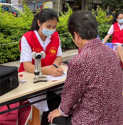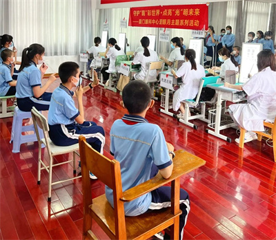建黨節(jié)期間,項(xiàng)目聯(lián)合廈門(mén)大學(xué)附屬?gòu)B門(mén)眼科中心黨總支、鳳凰花光明先鋒志愿服務(wù)隊(duì)組織黨員志愿者代表,來(lái)到同安區(qū)蓮花鎮(zhèn)蓮花村新時(shí)代文明實(shí)踐站、翔安區(qū)金海街道浦西社區(qū)新時(shí)代文明實(shí)踐站,為當(dāng)?shù)鼐用袢罕娝腿チ伺牡难劢】岛Y查及義診活動(dòng)。