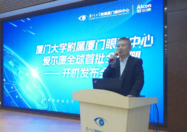 ▲華廈眼科醫(yī)院集團副總院長、廈門大學附屬廈門眼科中心業(yè)務院長王騫教授代表致辭