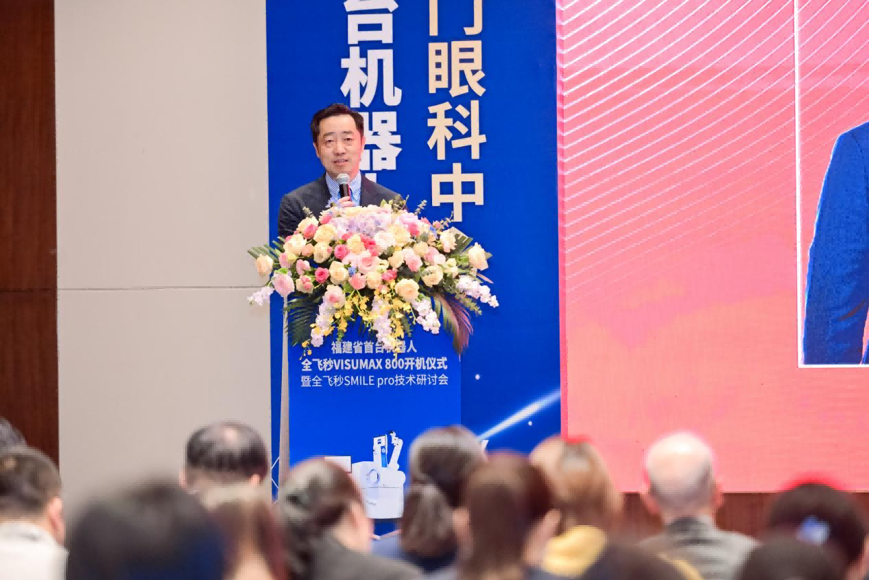 蔡司公司王建中總監(jiān)對廈門眼科中心成為新一代機器人全飛秒VISUMAX 800設(shè)備的首批裝機機構(gòu)表示祝賀。他表示新一代機器人全飛秒VISUMAX 800和新微創(chuàng)SMILE pro手術(shù)必將為中國屈光事業(yè)的進(jìn)一步發(fā)展注入新動能。