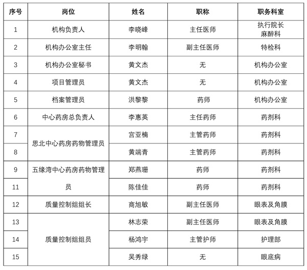 廈門大學(xué)附屬廈門眼科中心藥物臨床試驗(yàn)機(jī)構(gòu)成員名單